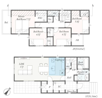 建築確認番号:第トラストT25-0257号 カップボード WIC SC 宅配ボックス フラット35利用の場合は適合証明取得費用別途88,000円