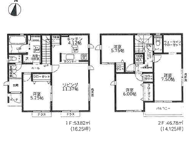 司法書士は売主指定 キッチンには約2.5帖のパントリー 延べ床面積には車庫部分11.25㎡を含む。