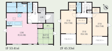 LDK16.0畳 和室4.5畳 洋室6.75畳 洋室6.75畳 洋室6.5畳 |