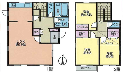 LDK19.0畳 洋室6.0畳 洋室5.0畳 洋室4.5畳 |