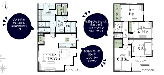 間取内容 LDK18.75畳   洋室6.38畳   洋室6.0畳   洋室5.5畳   洋室5.34畳