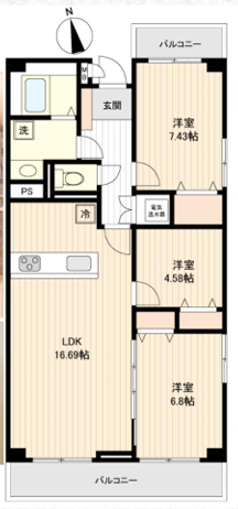 LDK16.6畳 洋室6.8畳 洋室7.4畳 洋室4.5畳 |