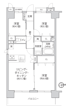 LDK11.7畳 洋室6.0畳 洋室5.1畳 洋室4.1畳 |