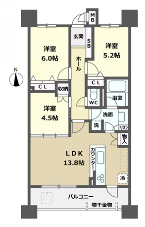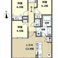 LDK13.8畳 洋室6.0畳 洋室5.2畳 洋室4.5畳 |