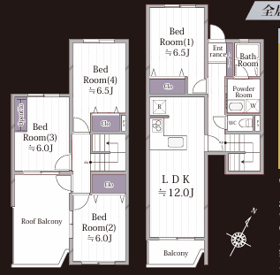 LDK12.0畳 2階 洋室6.5畳 2階 洋室6.5畳 3階 洋室6.0畳 3階 洋室6.0畳 3階 |