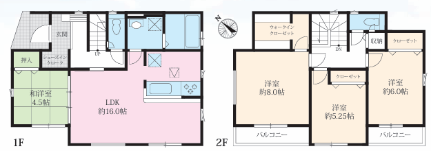 LDK16.0畳 和室4.5畳 洋室8.0畳 洋室6.0畳 洋室5.25畳 |