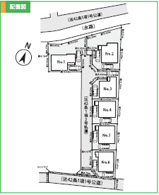 | 土地面積 | 110.01㎡~196.47㎡ | 建物面積 | 各103.92㎡~109.30㎡ |