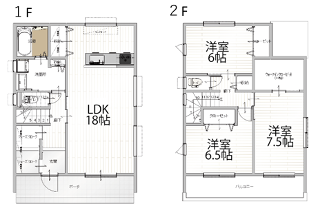 LDK18.0畳 洋室7.5畳 洋室6.0畳 洋室6.0畳 +WIC |
