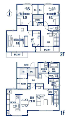 LDK21.0畳 洋室9.8畳 洋室6.0畳 洋室6.0畳 |