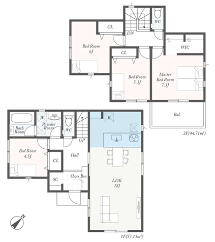 間取内容 LDK18.0畳   洋室4.5畳   洋室7.3畳   洋室6.0畳   洋室5.3畳