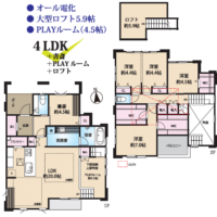| 設備・条件 | 角地 IHコンロ 三口コンロ システムキッチン カウンターキッチン 給湯 独立洗面台 ユニットバス バス・トイレ別 温水洗浄便座 床下収納 W.INクローゼット ロフト付き 公営水道 排水下水 駐車場有 オール電化 居住中の為内見の際は事前にご相談ください 4方向道路 オール電化 書斎 PLAYルーム ロフト |