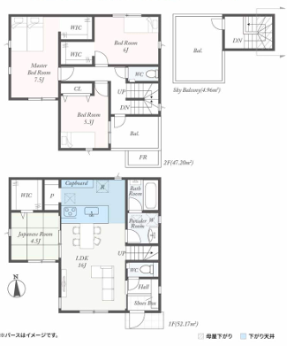 LDK16.0畳 和室4.5畳 洋室7.5畳 洋室5.3畳 洋室5.3畳 +WIC+スカイバルコニー |