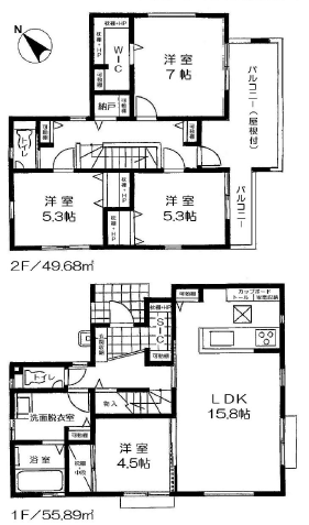 LDK15.8畳 1階 洋室4.5畳 1階 洋室7.0畳 洋室5.3畳 洋室5.3畳 +WIC+SIC |